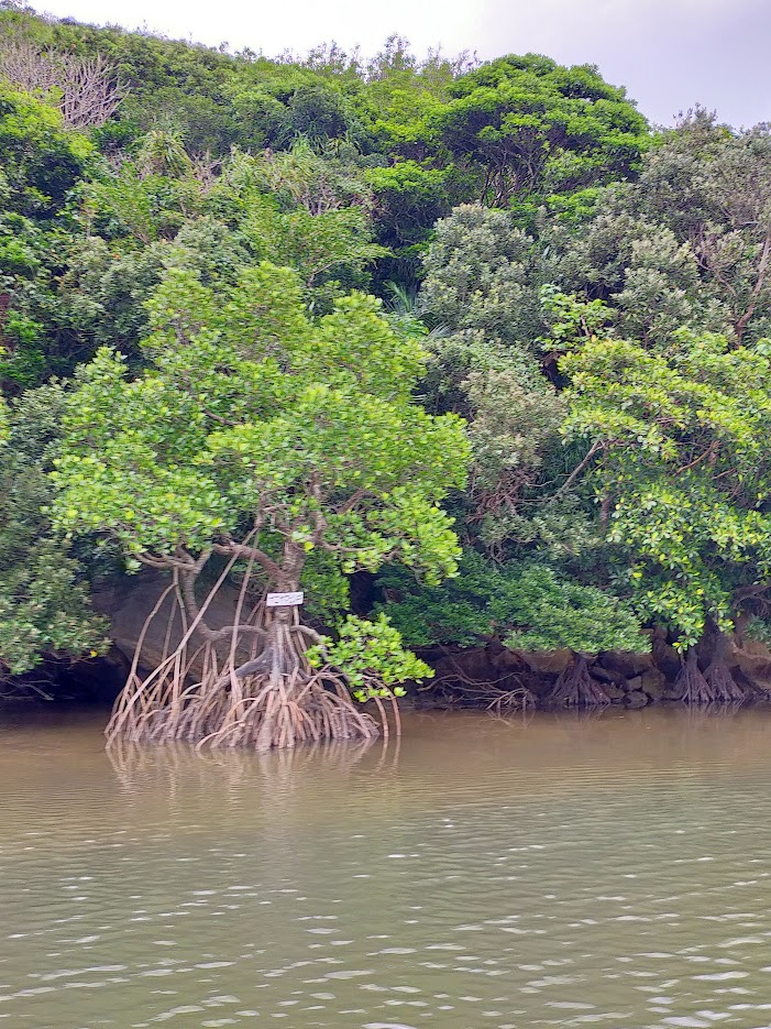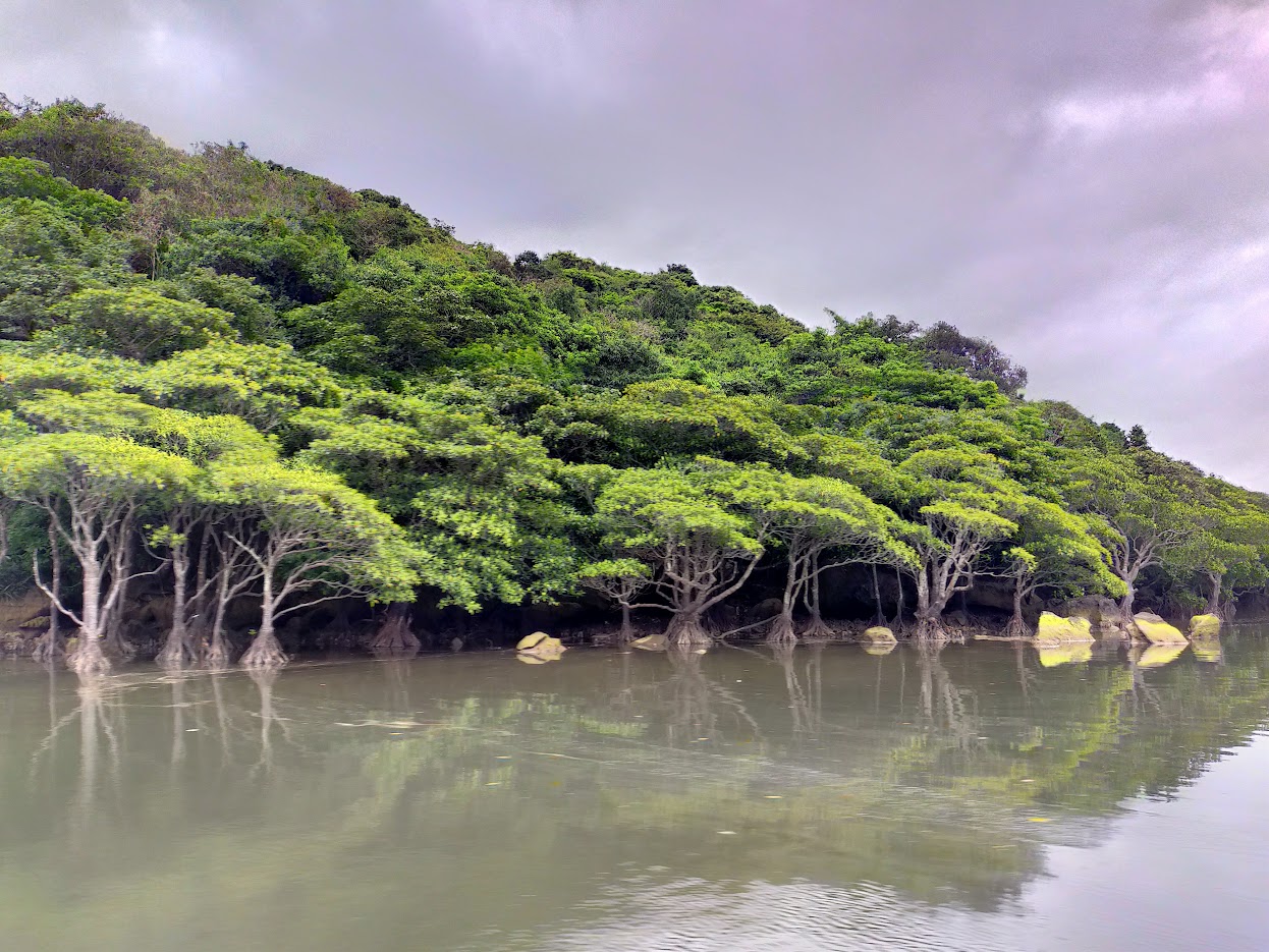 船長さんが、浦内川を取り囲むジャングルについて解説してくださいます。